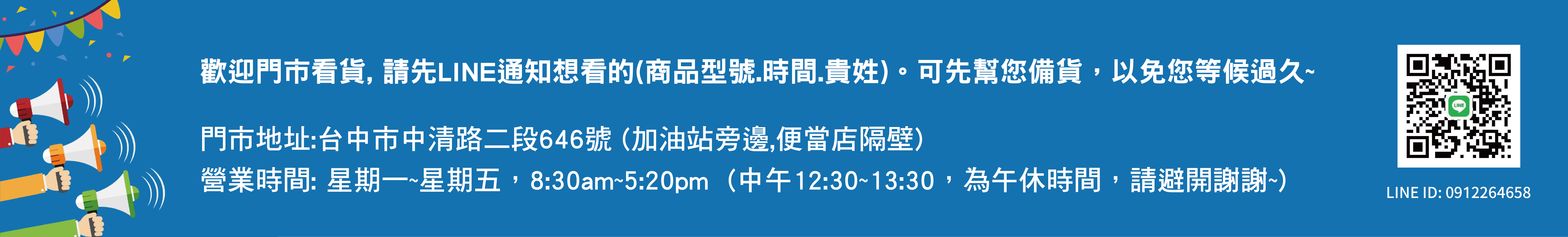 如要來門市看錶自取,請先Line:0912264658 通知,告知您要買的 (商品型號.來的時間.貴姓)。我們需先為您備貨,以免您等候過久的時間喔,謝謝 !!