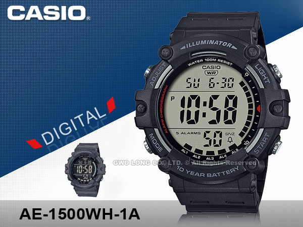 AE-1500WH-1A CASIO 電子錶 橡膠錶帶 LED照明 防水100米 AE-1500WH