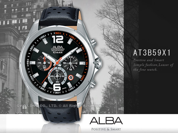 AT3B59X1 ALBA 三眼計時男錶 皮革錶帶 黑 防水100米