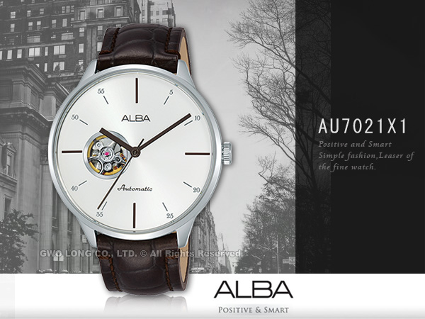 AU7021X1 ALBA 機械男錶 皮革錶帶 銀白 防水50米