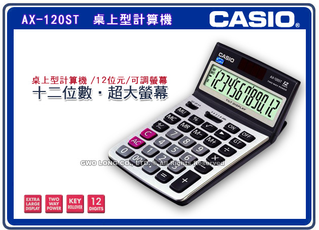 AX-120ST CASIO 桌上型計算機 可仰角螢幕 12位數