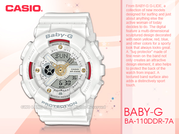 BA-110DDR-7A CASIO BABY-G 雙顯女錶 橡膠錶帶 白色 防水100米