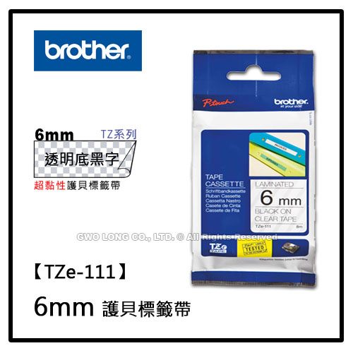 TZe-111 6mm BROTHER 透明底黑字 護貝標籤機色帶 耗材