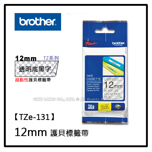 TZe-131 12mm BROTHER 透明底黑字 護貝標籤機色帶 耗材