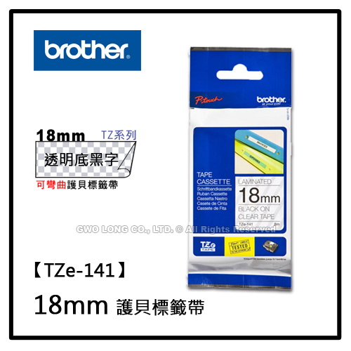 TZe-141 18mm BROTHER 透明底黑字 護貝標籤機色帶 耗材