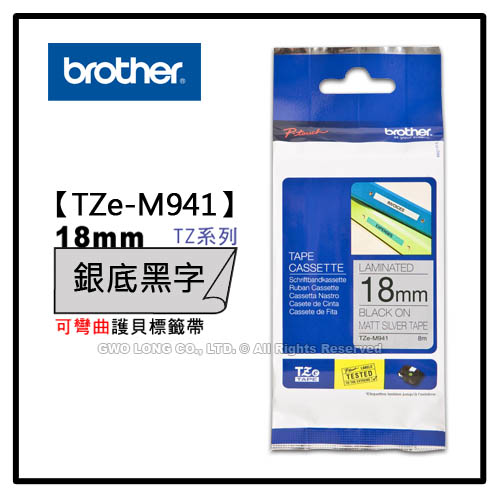 TZe-M941 18mm BROTHER 黑底白字 護貝標籤機色帶 耗材
