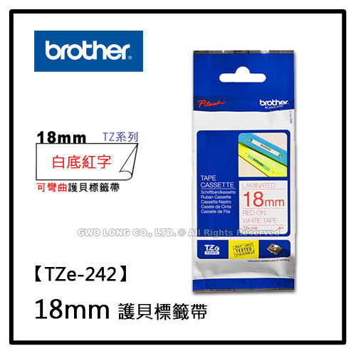 TZe-242 18mm BROTHER 白底紅字 護貝標籤機色帶 耗材