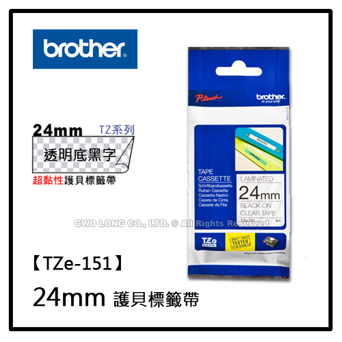TZe-151 24mm BROTHER 透明底黑字 護貝標籤機色帶 耗材