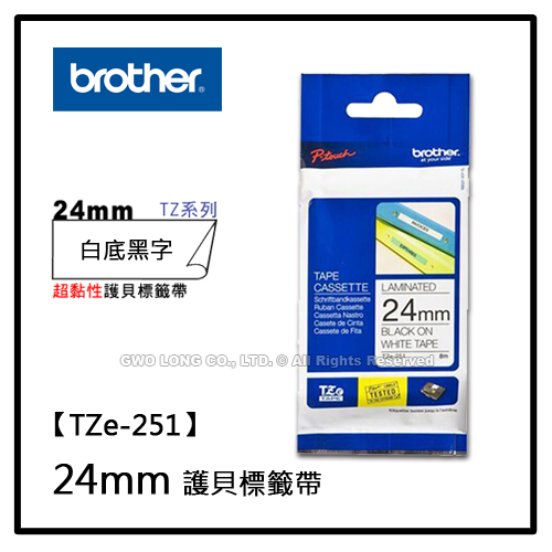 TZe-251 24mm BROTHER 白底黑字 護貝標籤機色帶 耗材