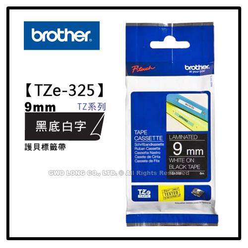 TZe-325 9mm BROTHER 黑底白字 護貝標籤機色帶 耗材