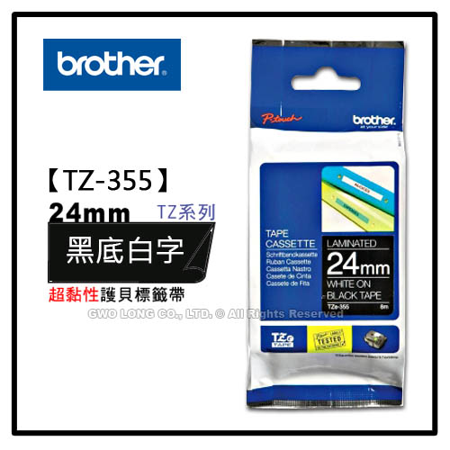 TZe-355 24mm BROTHER 黑底白字 護貝標籤機色帶 耗材