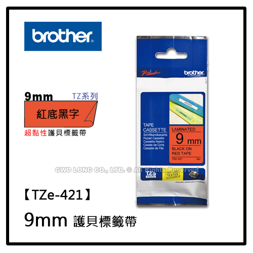 TZe-421 9mm BROTHER 紅底黑字 護貝標籤機色帶 耗材