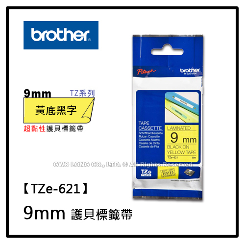 TZe-621 9mm BROTHER 黃底黑字 護貝標籤機色帶 耗材