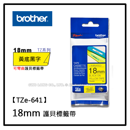 TZe-641 18mm BROTHER 黃底黑字 護貝標籤機色帶 耗材