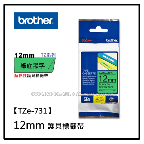 TZe-731 12mm BROTHER 綠底黑字 護貝標籤機色帶 耗材