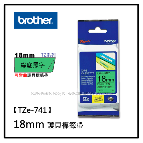 TZe-741 18mm BROTHER 綠底黑字 護貝標籤機色帶 耗材