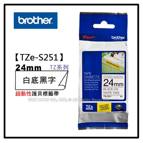 TZe-S251 24mm BROTHER 白底黑字 超黏性護貝標籤機色帶 耗材