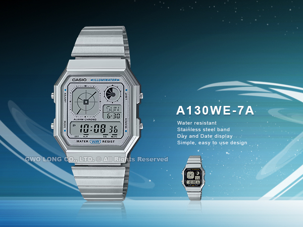 A130WE-7A CASIO 復古潮流 電子錶 不鏽鋼錶帶 多城市時間 生活防水 鬧鈴碼表 A130WE