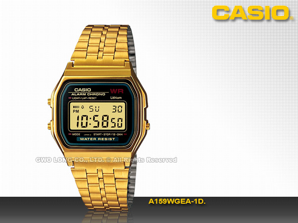 A159WGEA-1DF CASIO 電子男錶 LED照明 不銹鋼錶帶 每日鬧鈴 碼錶