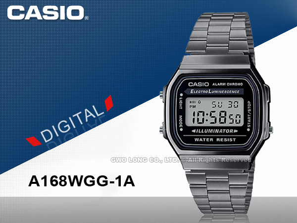 A168WGG-1A CASIO 復古電子錶 不鏽鋼錶帶 煙燻灰 自動月曆 生活防水