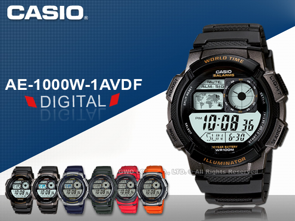 AE-1000W-1A CASIO 電子錶 中性錶 橡膠錶帶 防水100米 自動LED照明 碼錶 鬧鈴