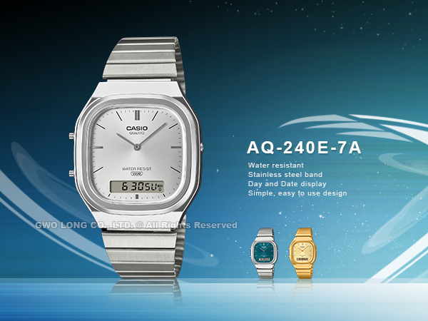 AQ-240E-7A CASIO 復古潮流 方形雙顯錶 銀白 不鏽鋼錶帶 生活防水 AQ-240E