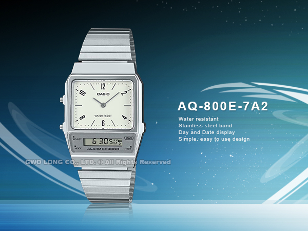 AQ-800E-7A2 CASIO 復刻時尚 雙顯指針錶 簡約白 不鏽鋼錶帶 碼錶鬧鈴 兩地時間 生活防水