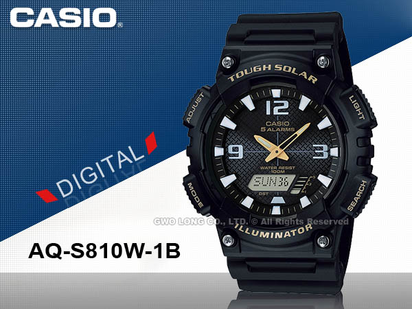 AQ-S810W-1BVDF CASIO 雙顯錶 太陽能電力 橡膠錶帶 LED燈 防水100米 碼錶