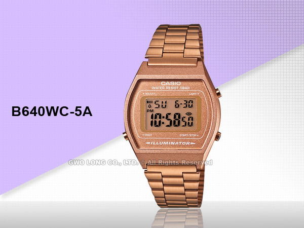 B640WC-5A CASIO 電子女錶 不鏽鋼錶帶 50米防水 碼表 LED照明