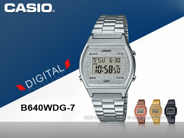 B640WDG-7 CASIO 電子錶 不鏽鋼錶帶 可調節式錶扣 50米防水 碼表 LED琥珀色照明