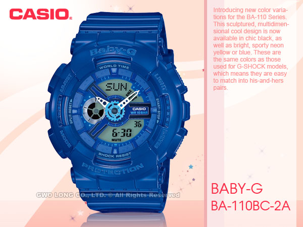 BA-110BC-2ADR CASIO BABY-G 多彩潮流活力款雙顯女錶 橡膠錶帶 海洋藍 防水100米