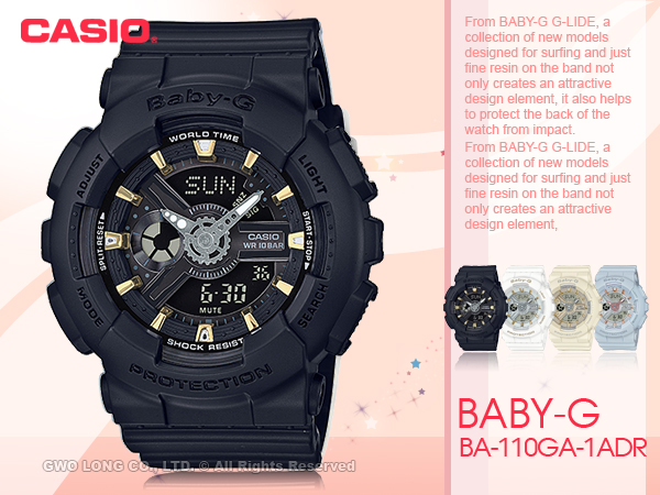 BA-110GA-1ADR CASIO BABY-G 個性百搭雙顯女錶 橡膠錶帶 黑X金 防水100米