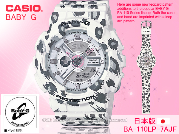 BA-110LP-7AJF CASIO BABY-G 日版 時尚豹紋雙顯女錶 白底灰斑紋 防水100米
