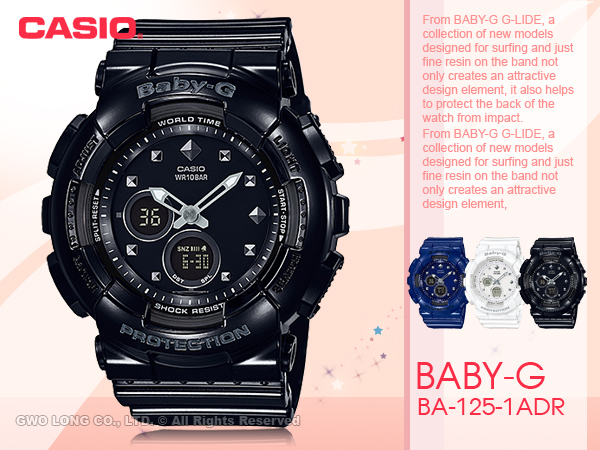 BA-125-1ADR CASIO BABY-G 時尚酷炫雙顯女錶 橡膠錶帶 亮面黑 防水100米