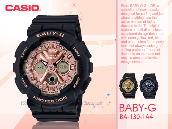 BA-130-1A4 CASIO BABY-G 獨特個性雙顯女錶 橡膠錶帶 黑X玫瑰金 防水100米