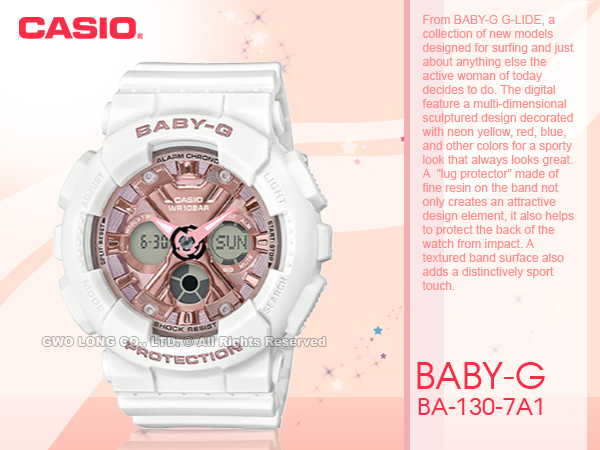 BA-130-7A1 CASIO 風格時尚雙顯女錶 樹脂錶帶 霧面白x櫻粉 防水100米