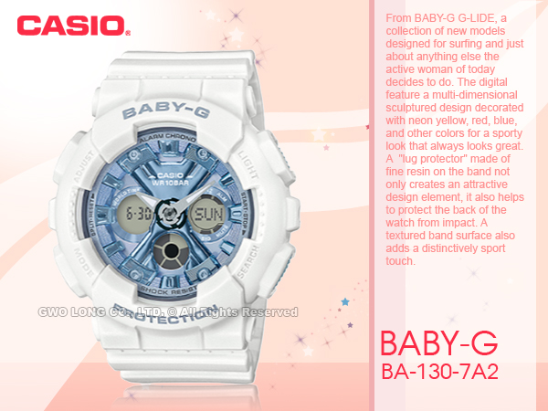 BA-130-7A2 CASIO 風格時尚雙顯女錶 樹脂錶帶 霧面白x湛藍 防水100米