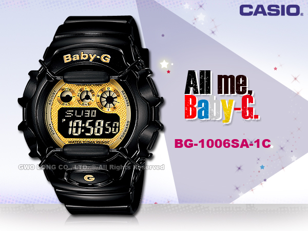 BG-1006SA-1CDR CASIO BABY-G 靚亮金屬電子女錶 橡膠錶帶 黑金 防水100米