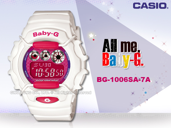 BG-1006SA-7A CASIO BABY-G 靚亮金屬電子女錶 橡膠錶帶 白X桃紅 防水100米