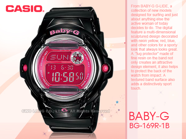 BG-169R-1BDR CASIO BABY-G 繽紛電子女錶 橡膠錶帶 黑X粉 防水200米