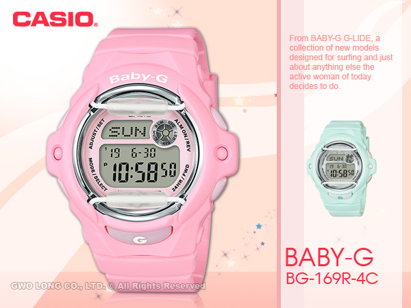 BG-169R-4C CASIO BABY-G 甜美夢幻電子女錶 橡膠錶帶 粉色錶面 防水200米