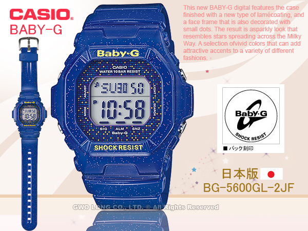 BG-5600GL-2JF CASIO BABY-G 日版 閃耀星空電子女錶 橡膠錶帶 藍 防水100米