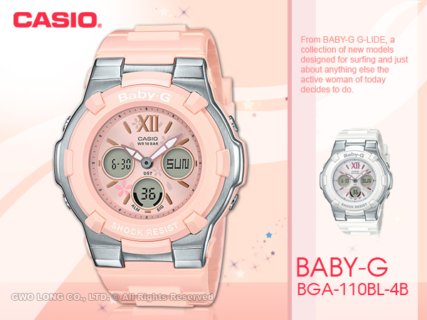 BGA-110BL-4B CASIO BABY-G 清新甜美雙顯女錶 橡膠錶帶 夢幻粉 防水100米