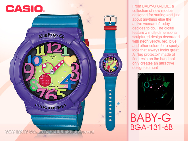 BGA-131-6BDR CASIO BABY-G 人氣霓虹照明系列雙顯女錶 橡膠錶帶 防水100米