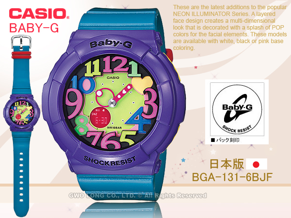 BGA-131-6BJF CASIO BABY-G 人氣霓虹照明系列雙顯女錶 橡膠錶帶 紫X藍 防水100米 日本版