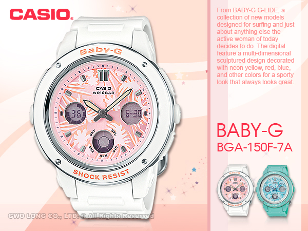 BGA-150F-7ADR CASIO BABY-G 繽紛亮麗雙顯女錶 橡膠錶帶 白粉 防水100米