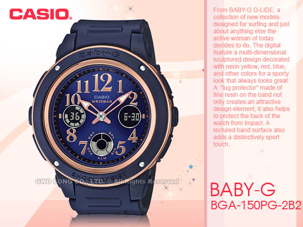 BGA-150PG-2B2 CASIO BABY-G 優雅秋風雙顯女錶 樹脂錶帶 海軍藍X玫瑰金 防水100米