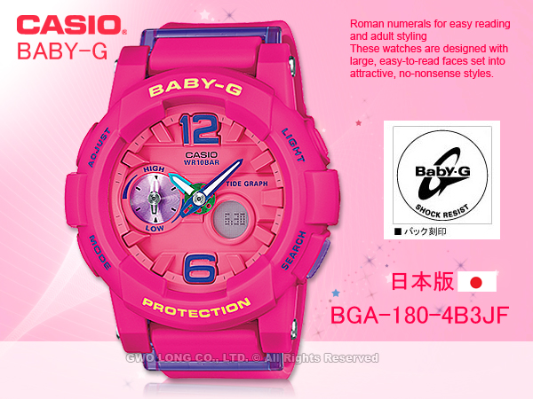 BGA-180-4B3JF CASIO BABY-G 日本版 立體時刻 極限運動雙顯女錶 桃紅 防水100米