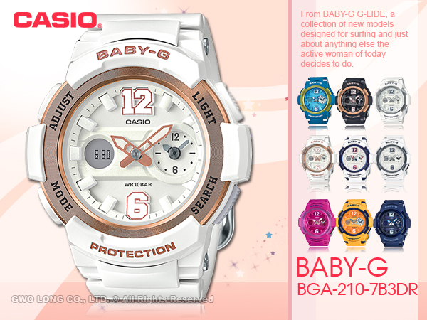 BGA-210-7B3DR CASIO BABY-G 街頭運動風雙顯女錶 橡膠錶帶 白X金 防水100米