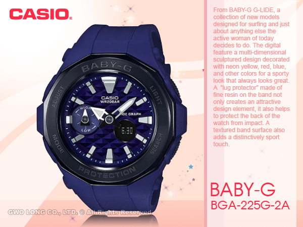 BGA-225G-2A CASIO BABY-G 帥氣酷炫雙顯女錶 橡膠錶帶 深藍色 防水200米